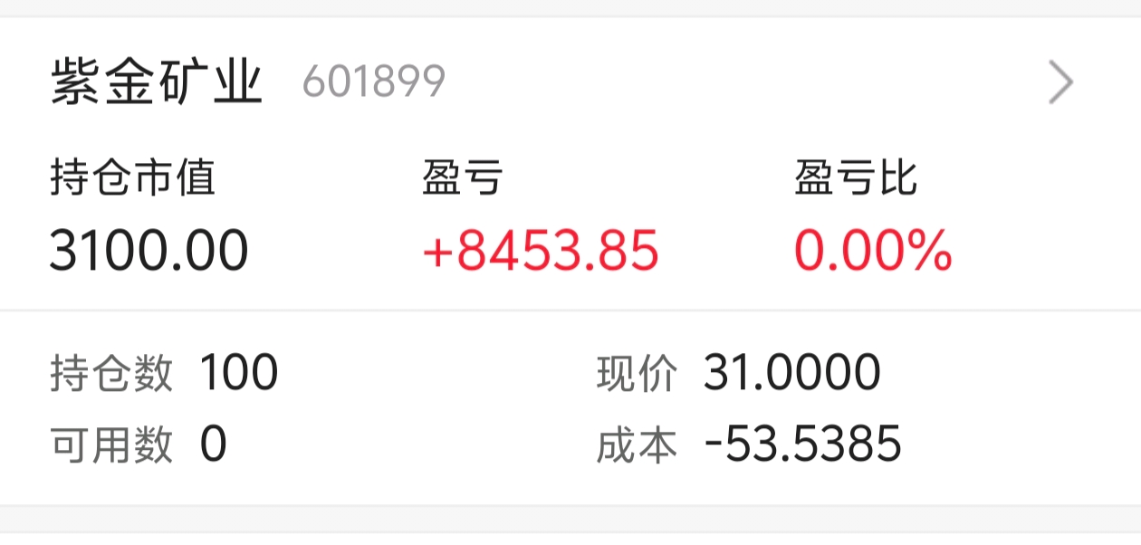 $紫金矿业(SH601899)$ 不是真心诚意卖的,想赚差价,结果踢飞,后来又在30.80买了100股,我还会重仓的~