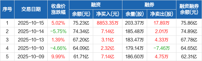 紫金矿业:融资余额75.23亿元,创历史新高(10-15)