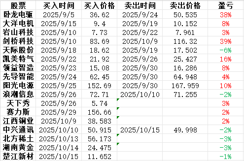 $紫金矿业(SH601899)$$卧龙电驱(SH600580)$$合肥城建(SZ002208)$//@财哥有道 :卧龙电驱:电机龙头,短期受机器人乌龙消息波及震荡,中长期多头趋势未改,待情绪回暖有望突破。上海电力:高位震荡分歧,回踩 5 日均线企稳,上行趋势清晰,分歧属健康整理,后续有望冲前高。紫金矿业:高位多空博弈,与宏观及大宗商品价格绑定,非趋势反转,板块回暖后有望凝聚上行动能。二、指数与盘面指数:冲高回落后守住 5 日均线,企稳信号明确,调整消化获利盘,后续大概率重拾震荡上行。板块:保险、银行、煤炭等价值板块领涨,港口航运午后走强;筹码向低估值迁移,重点关注价值板块持续性。三、持有股复盘个股 核心情况 操作策略天下秀:低开震荡,站稳 5 日线,上升趋势未变,继续格局赛力斯:区间震荡,筹码锁定好,业绩与销量有支撑 高抛低吸 + 格局江西铜业:高位震荡,受铜价与宏观影响,短线高抛低吸 + 格局北方稀土:未守住支撑位,抛压大承接弱,暂行止损湖南黄金 受大势影响下行,企稳 5 日线,黄金行情支撑,继续格局楚江新材 三天二板,炸板后回封,强势明确,继续格局合肥城建 5 天 4 板,炸板回封,人气与动能充足,继续格局