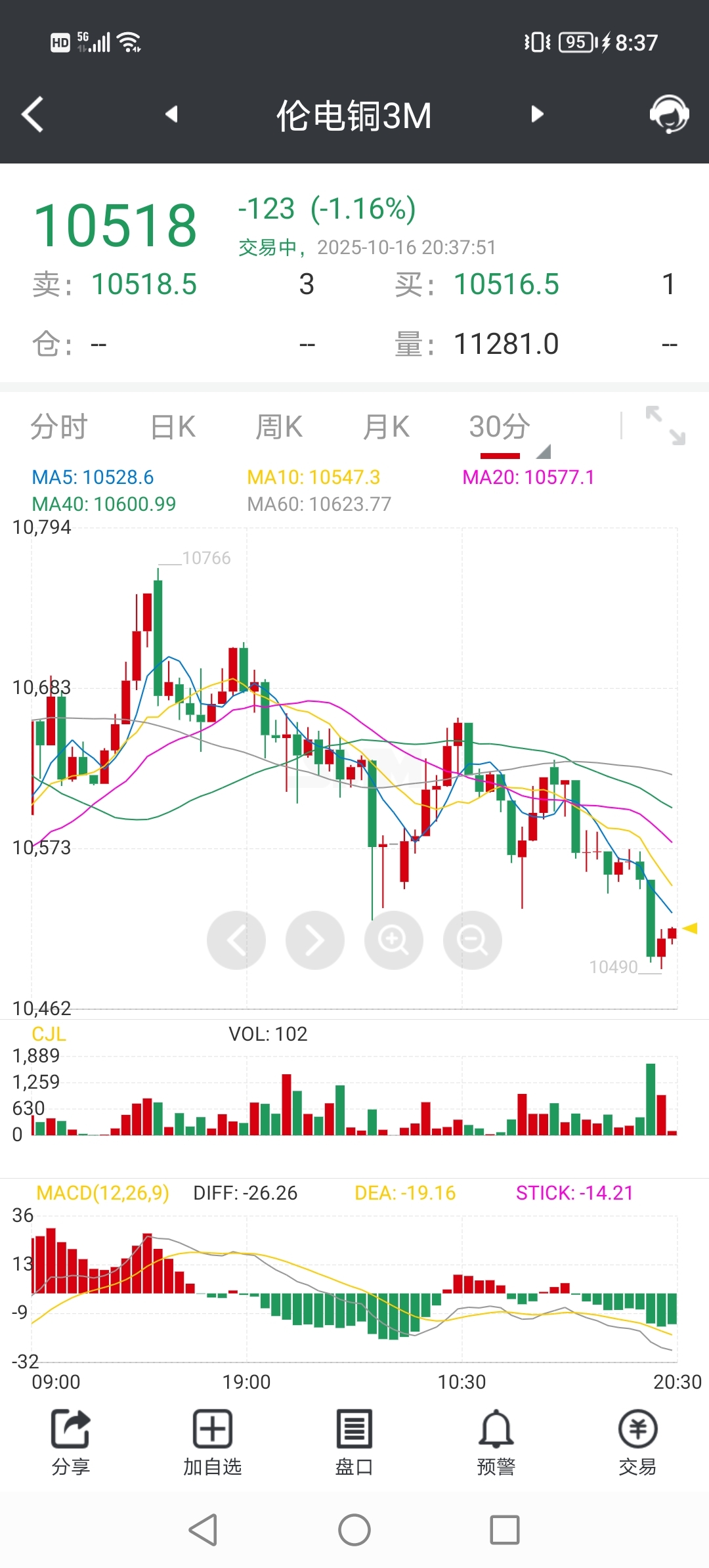 $紫金矿业(SH601899)$ 16日夜盘,伦铜持续下行,目前已大跌超120美元