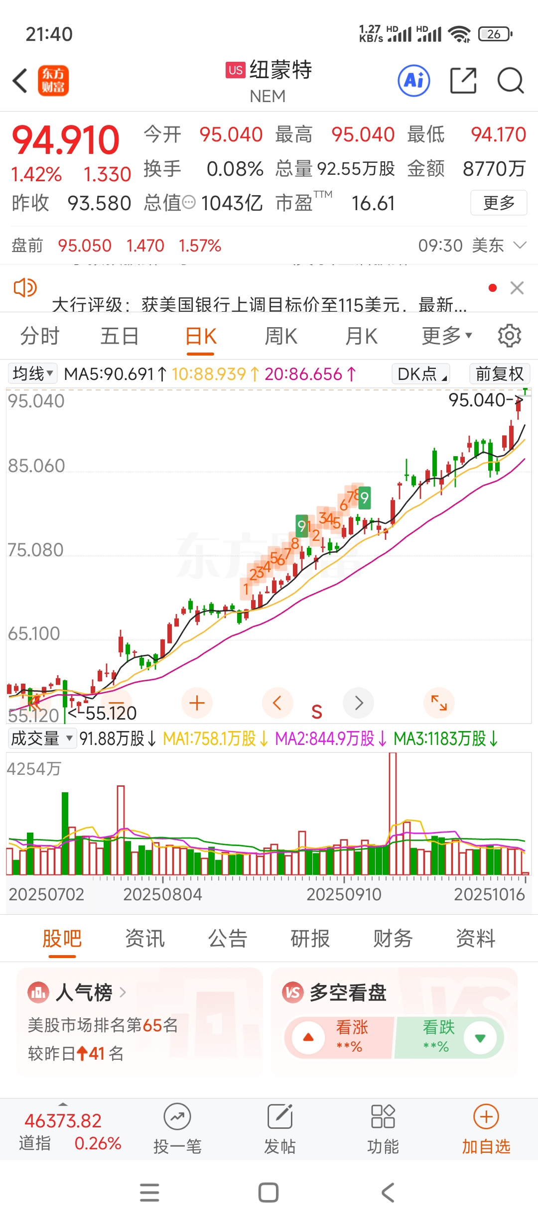 又破新高。我真的怀疑紫金矿业挖的是假黄金。