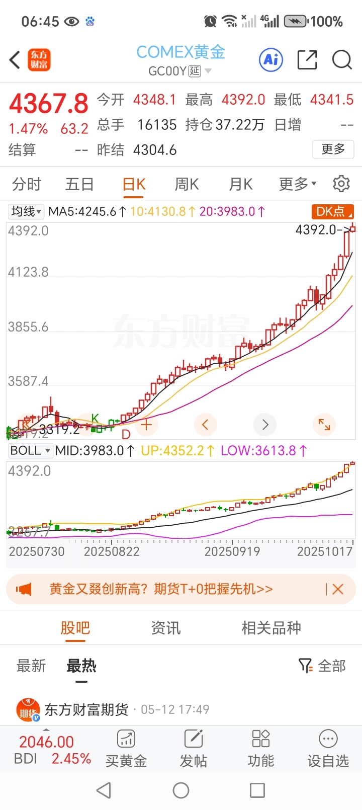 $紫金矿业(SH601899)$ 在人们都幻想黄金会爆跌,黄金却连续爆涨不停,照这样下去,谁还能猜到黄金的顶在哪儿?5千?6千?也许用不了一两个月就会被踩在脚下!