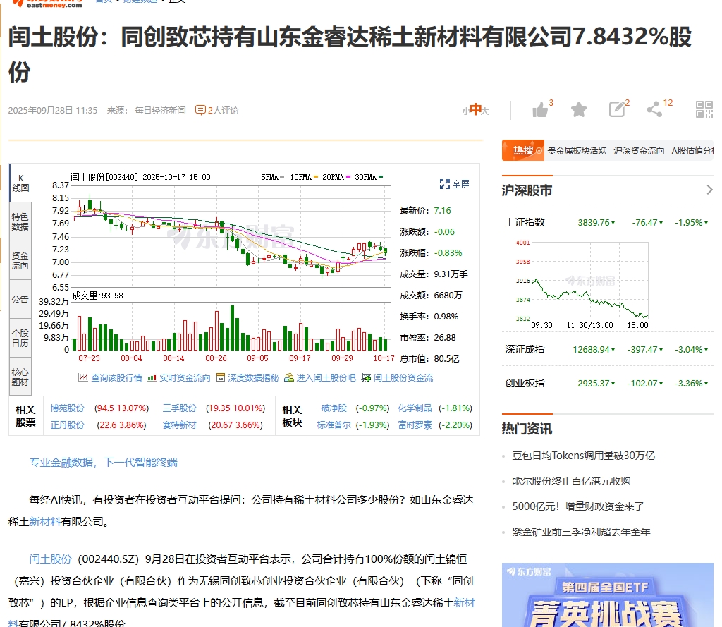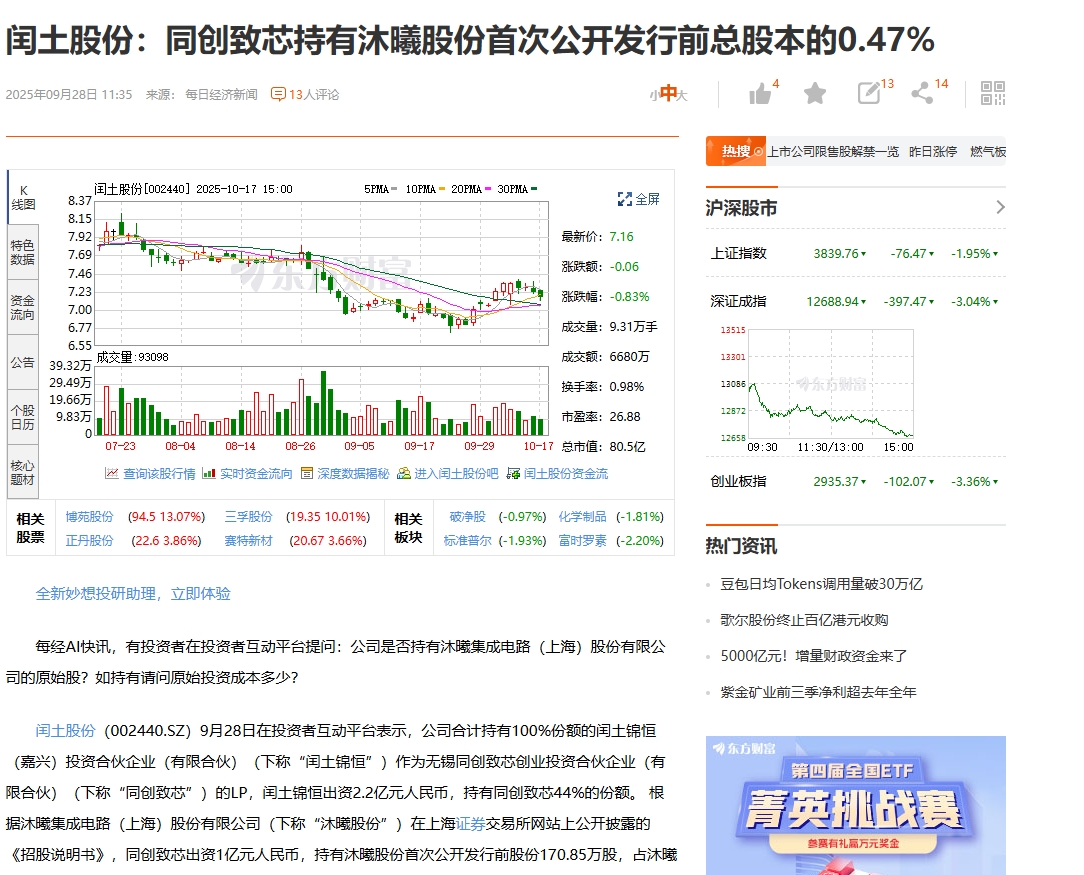 $紫金矿业(SH601899)$ 国际银价大跌,短期不能买金银股了,沐曦下周上会,看看这个闰土股份,闰土股份通过同创致芯持有沐曦股份,还持有上海燧原科技股票,A股中少有的涵盖两大国产半导体的股份的公司,随着国产代替,闰土持股收益必然不断增加,另外还持有稀土类公司股份,2025年公司上半年净利润同比增加43%,绝对是没被发掘的优质低位股。