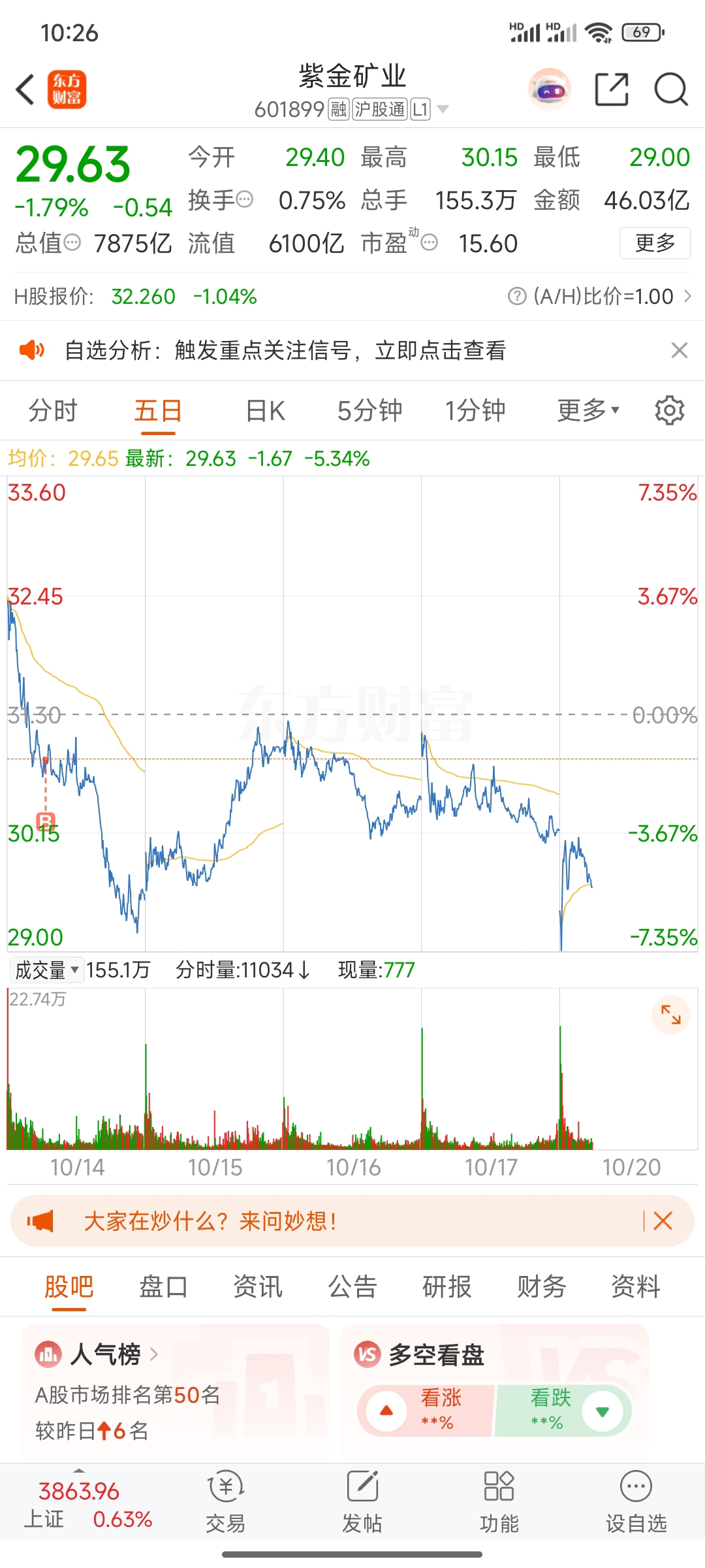 $紫金矿业(SH601899)$ 都跌多少天了,还吹呢