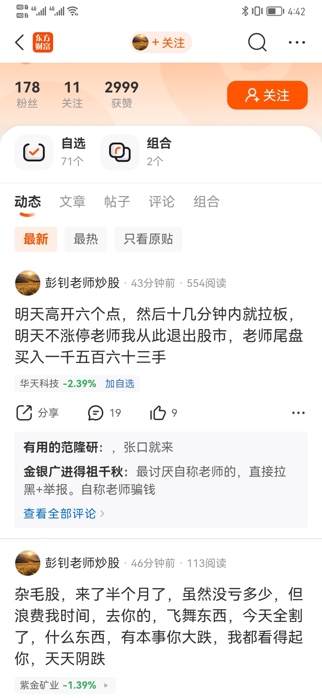 $紫金矿业(SH601899)$ @彭钊老师炒股 截图了哈,说到做到,别人虽然唱空,但是也是想法不一样,但是你,就是一个什么不如的东西,说到做到哈