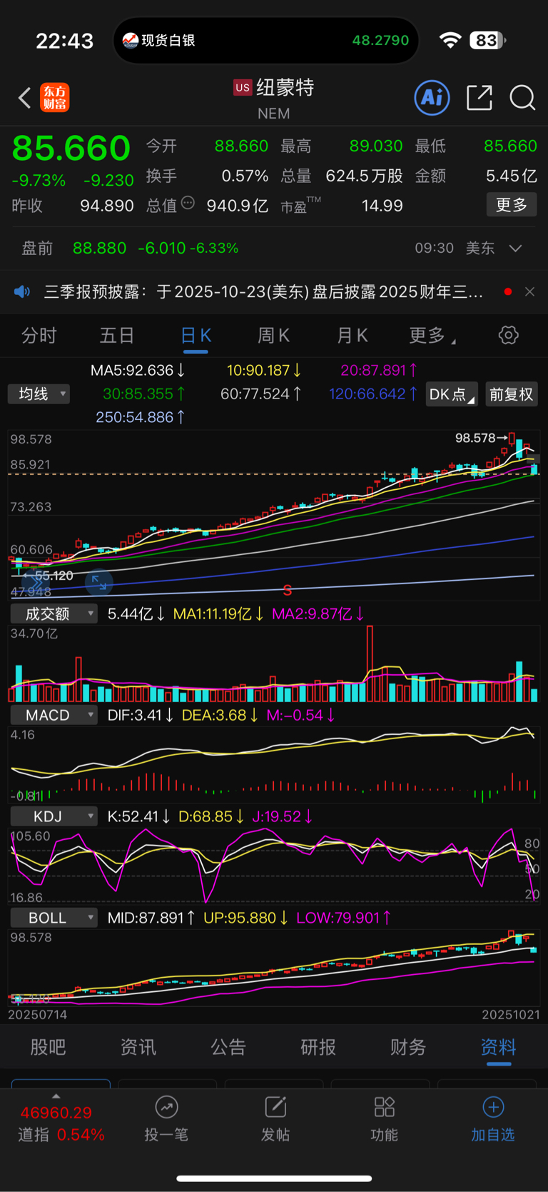 这个是美股的黄金+铜股,市值7000亿人民币左右,基本上跟紫金很接近。今晚暴跌。
