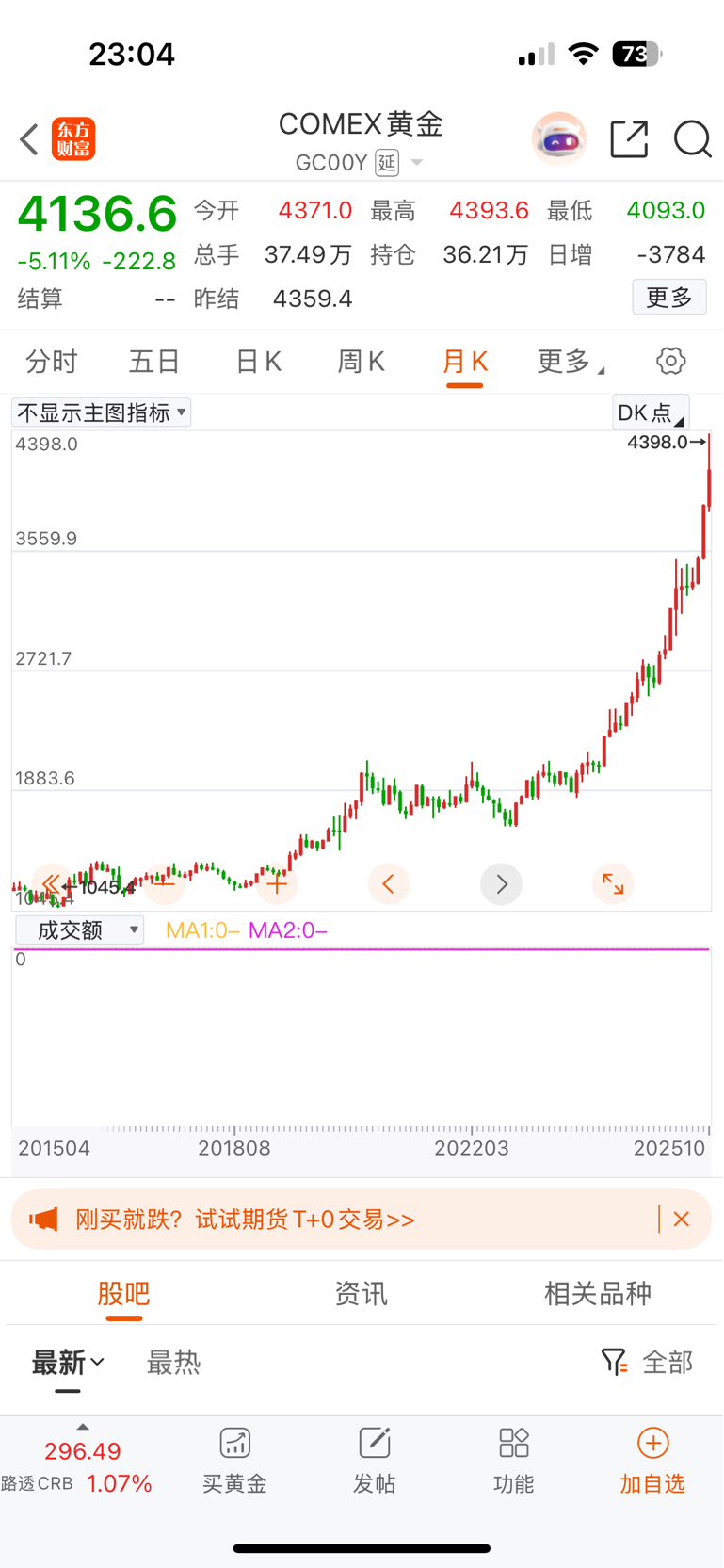 有杠杆的马上减仓,等回调逐步做空,止损4500-4600美元/盎司,目标3000-2500-2000美元/盎司