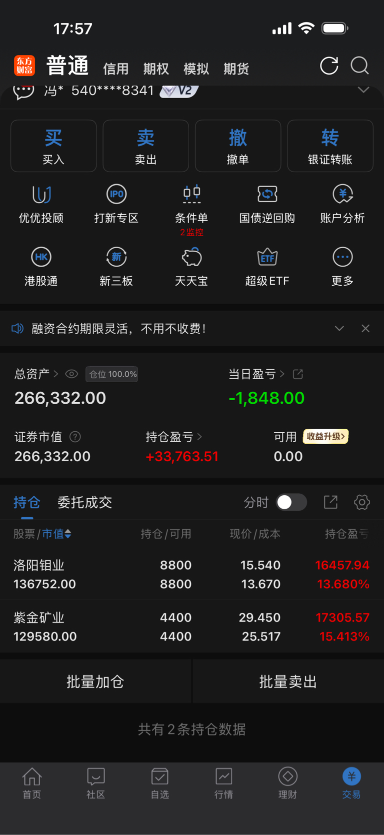 $紫金矿业(SH601899)$ 就两个票随便跌