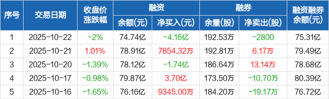 紫金矿业:融资净偿还4.16亿元,两市排名第一(10-22)