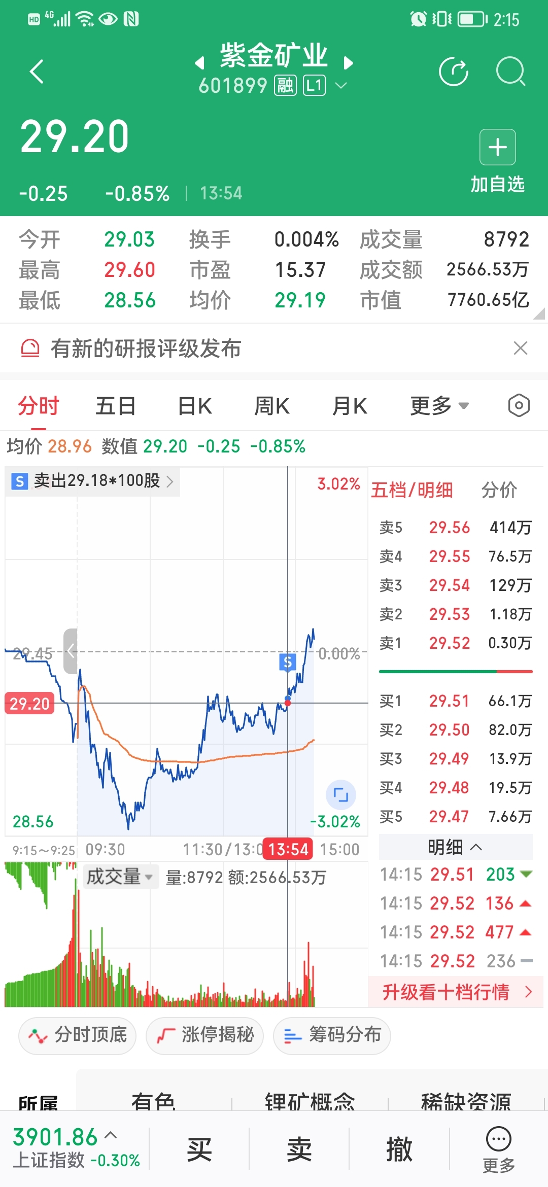 $紫金矿业(SH601899)$ 我这一手,卖的牛逼不,有时候你得信,你一卖他就涨