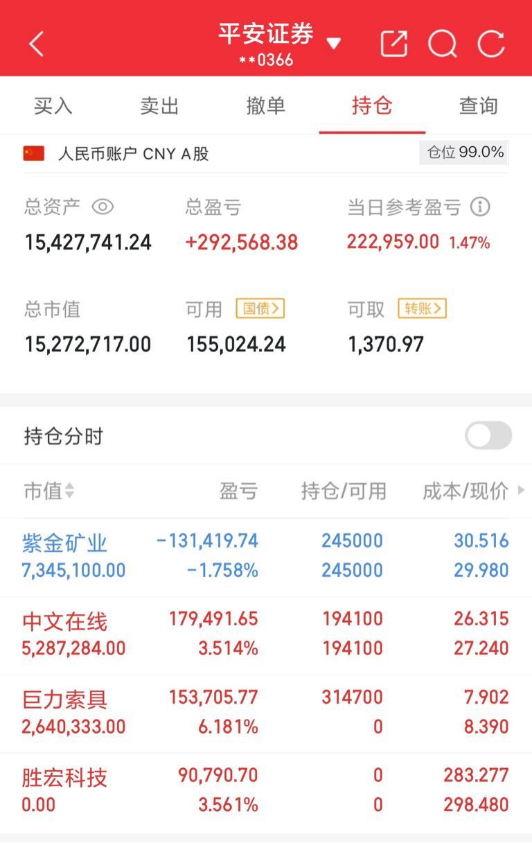 10.24继续持有$紫金矿业(SH601899)$ $中文在线(SZ300364)$ 这支具备增长潜力,我满怀期待,相信随着后续市场的发展,达成盈利目标。