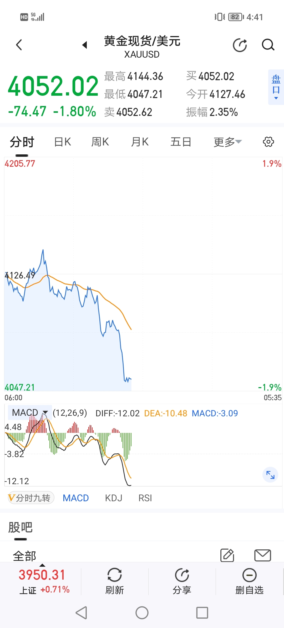 $紫金矿业(SH601899)$ 黄金!黄金!此时此刻,已暴跌超100美元
