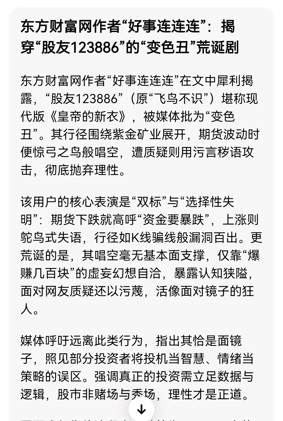 郑重声明:用户在财富号/股吧/博客等社区发表的所有信息(包括但不限于文字、视频、音频、数据及图表)仅代表个人观点,与本网站立场无关,不对您构成任何投资建议,据此操作风险自担。请勿相信代客理财、免费荐股和炒股培训等宣传内容,远离非法证券活动。请勿添加发言用户的手机号码、公众号、微博、微信及QQ等信息,谨防上当受骗!