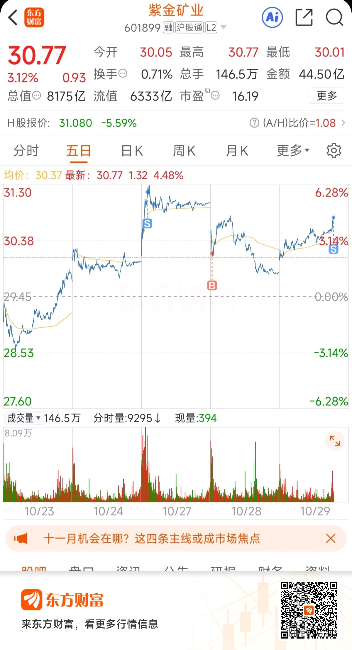 $紫金矿业(SH601899)$ 3个点,不贪了,昨天就是贪了
