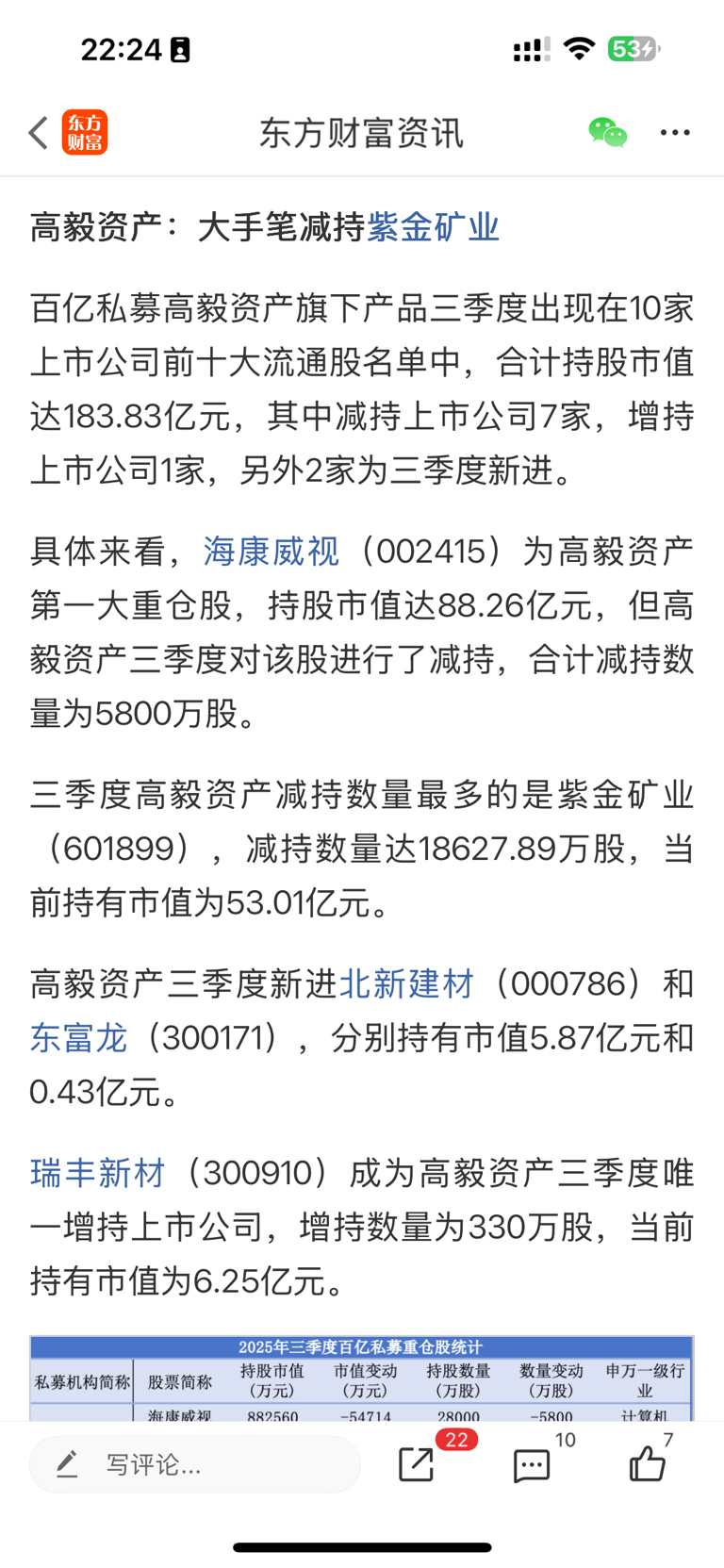 $紫金矿业(SH601899)$ 难怪涨不动!原来被一个私募就减持了53个亿