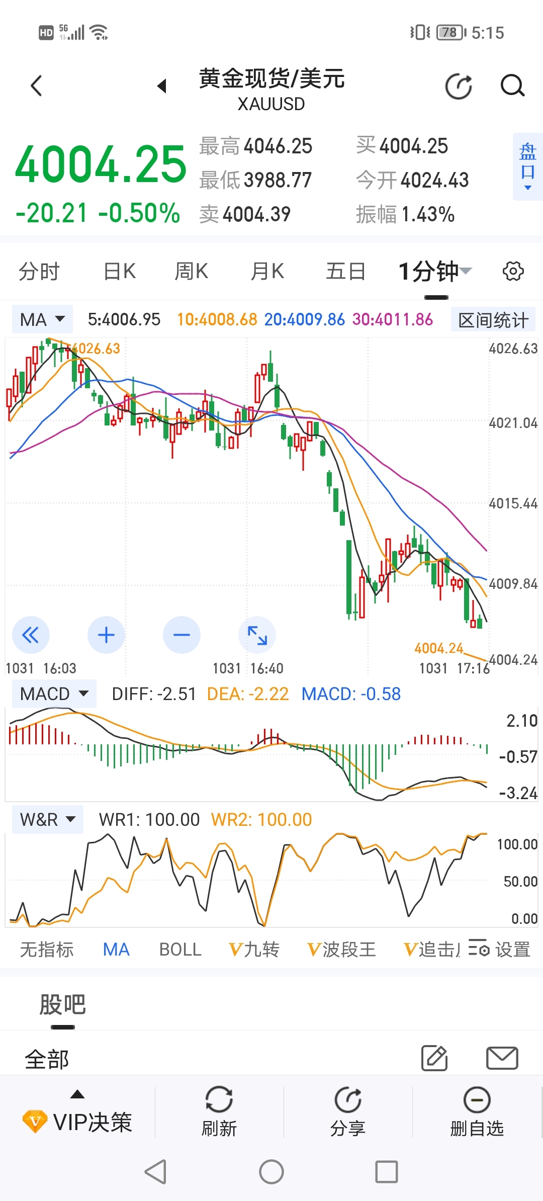31日盘后黄金持续下挫,目前已经大跌超42美元