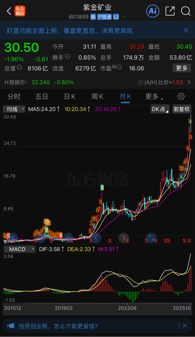 $紫金矿业(SH601899)$ 7年10倍
