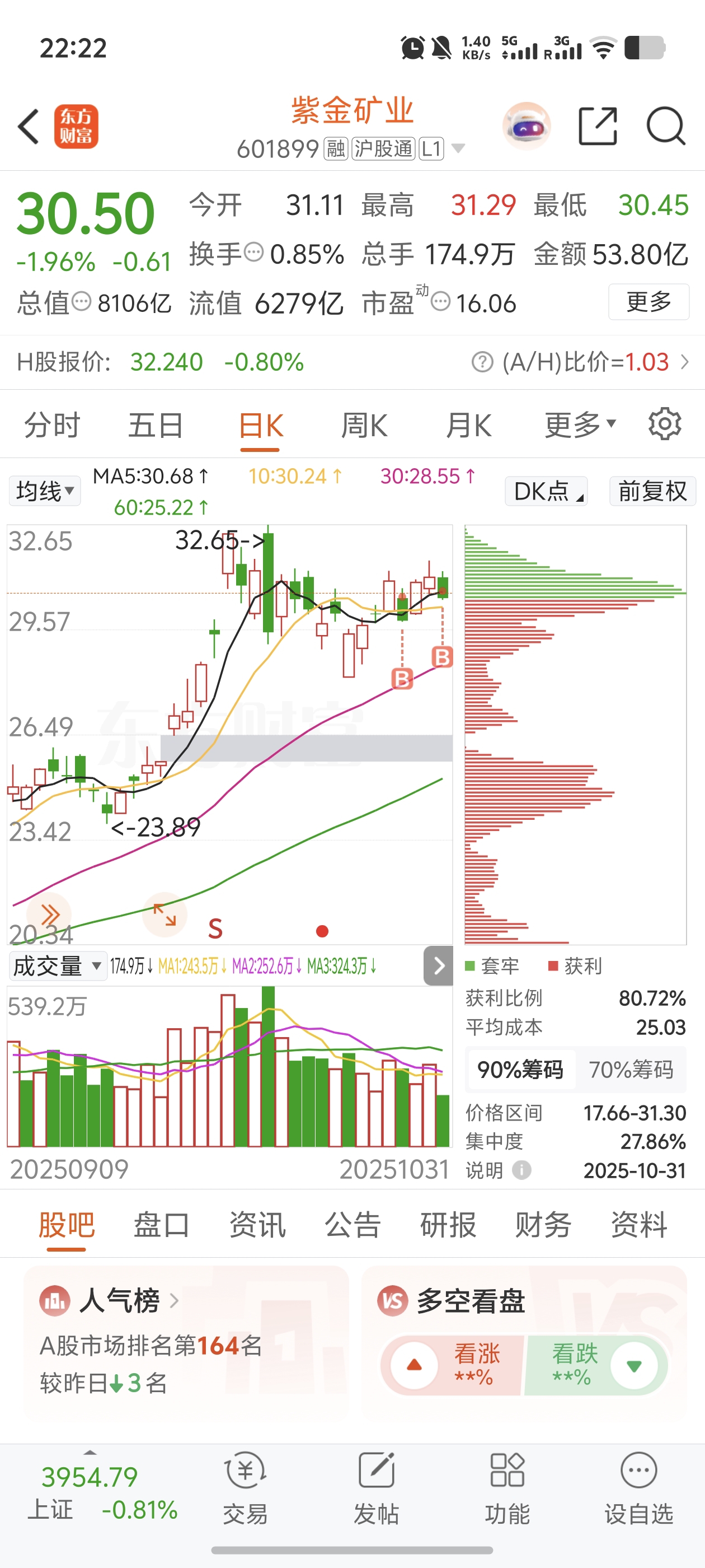 $紫金矿业(SH601899)$ 评论区这么多托说好的。估计要跌了