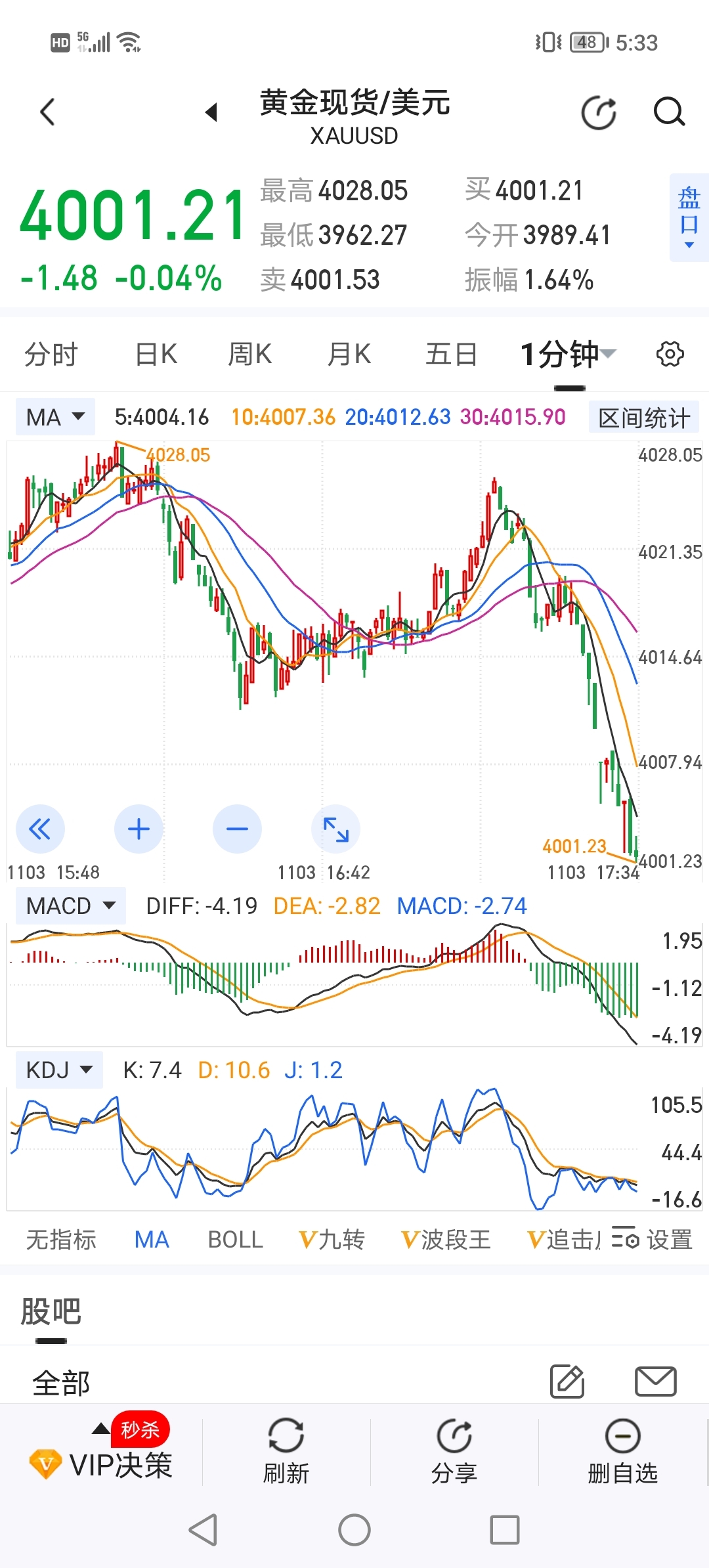 $紫金矿业(SH601899)$  11月了日A股盘后,黄金向下已超28美元