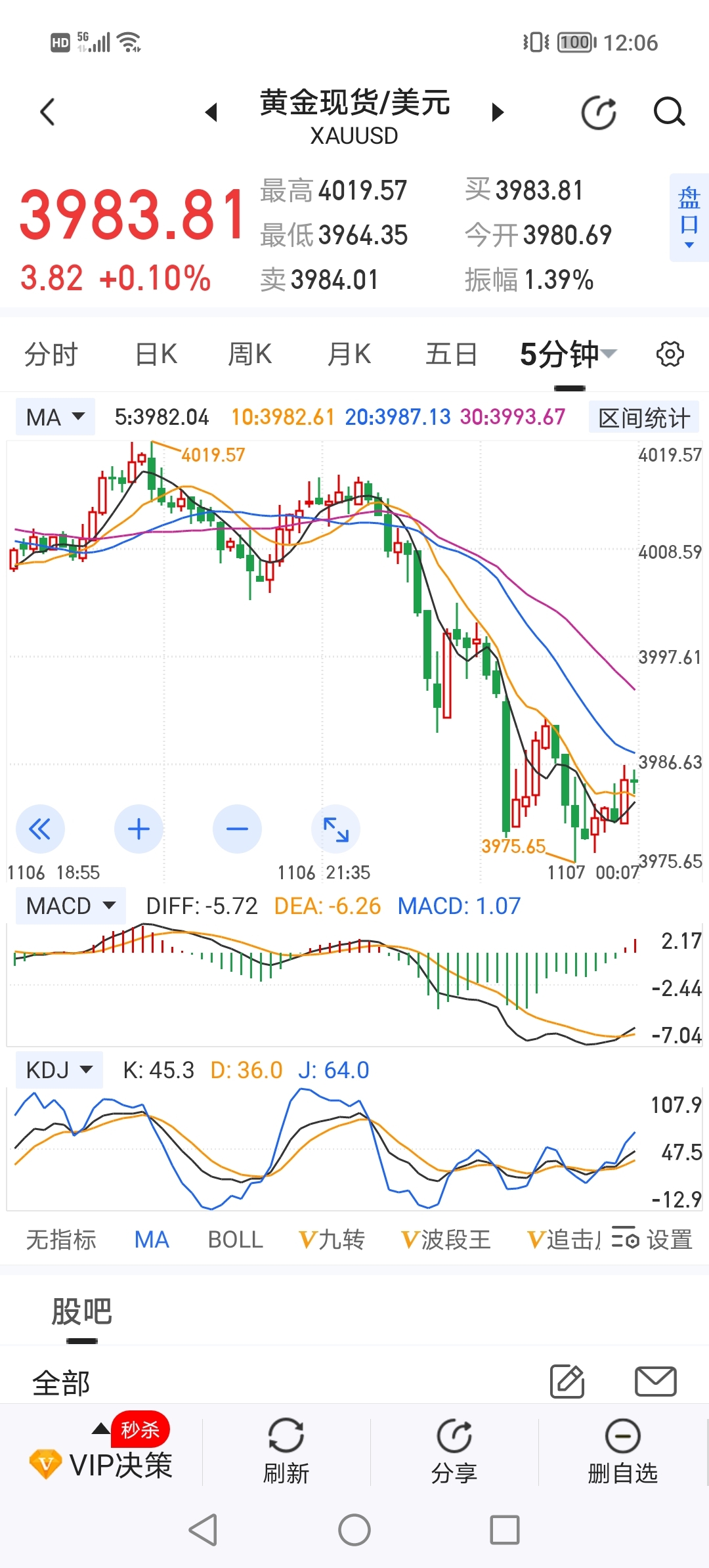 $紫金矿业(SH601899)$ 6日夜盘,黄金大跌40美元