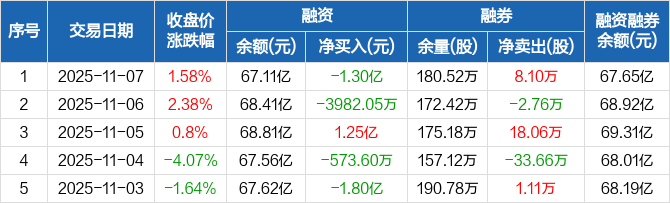 紫金矿业:融资净偿还1.3亿元,融资余额67.11亿元(11-07)