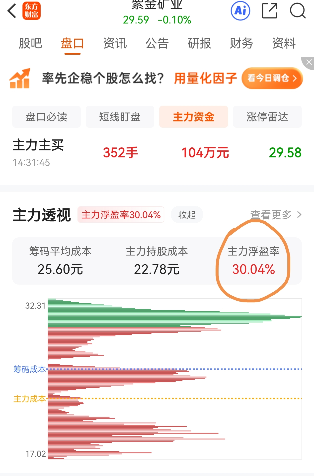 $紫金矿业(SH601899)$ 主力已经30%浮盈