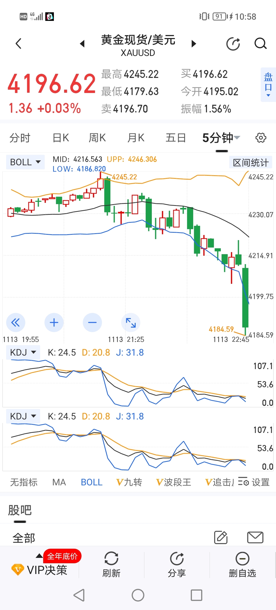 $紫金矿业(SH601899)$ 13日夜盘,黄金已暴跌超60美元,明天长阴反包