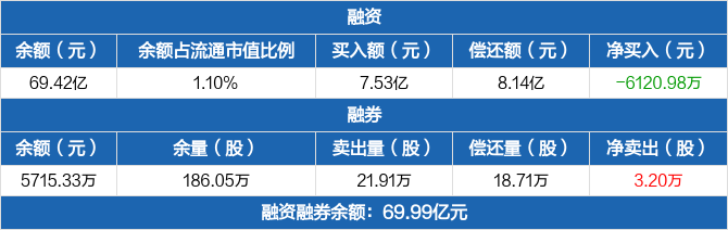 紫金矿业:融资净偿还6120.98万元,融资余额69.42亿元(11-13)