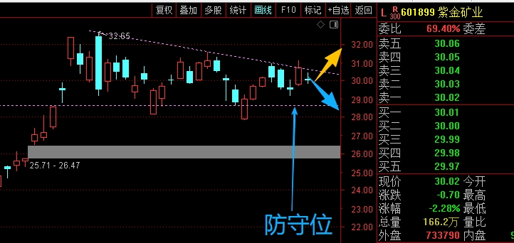$紫金矿业(SH601899)$ 近短时间主要是做一个高位震荡盘整,仔细来看目前是一个三角收敛形态正在走到尾部,接下来重点看完成后的一个方向选择,能带量突破就漂亮了,但突破不了就要注意回落风险,特别是脚底趋势线的支撑,有效跌破就要控制仓位应对了。