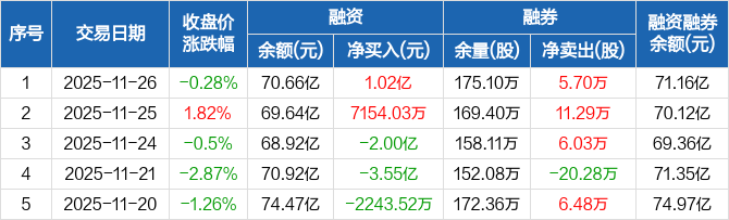 紫金矿业:融资净买入1.02亿元,融资余额70.66亿元(11-26)