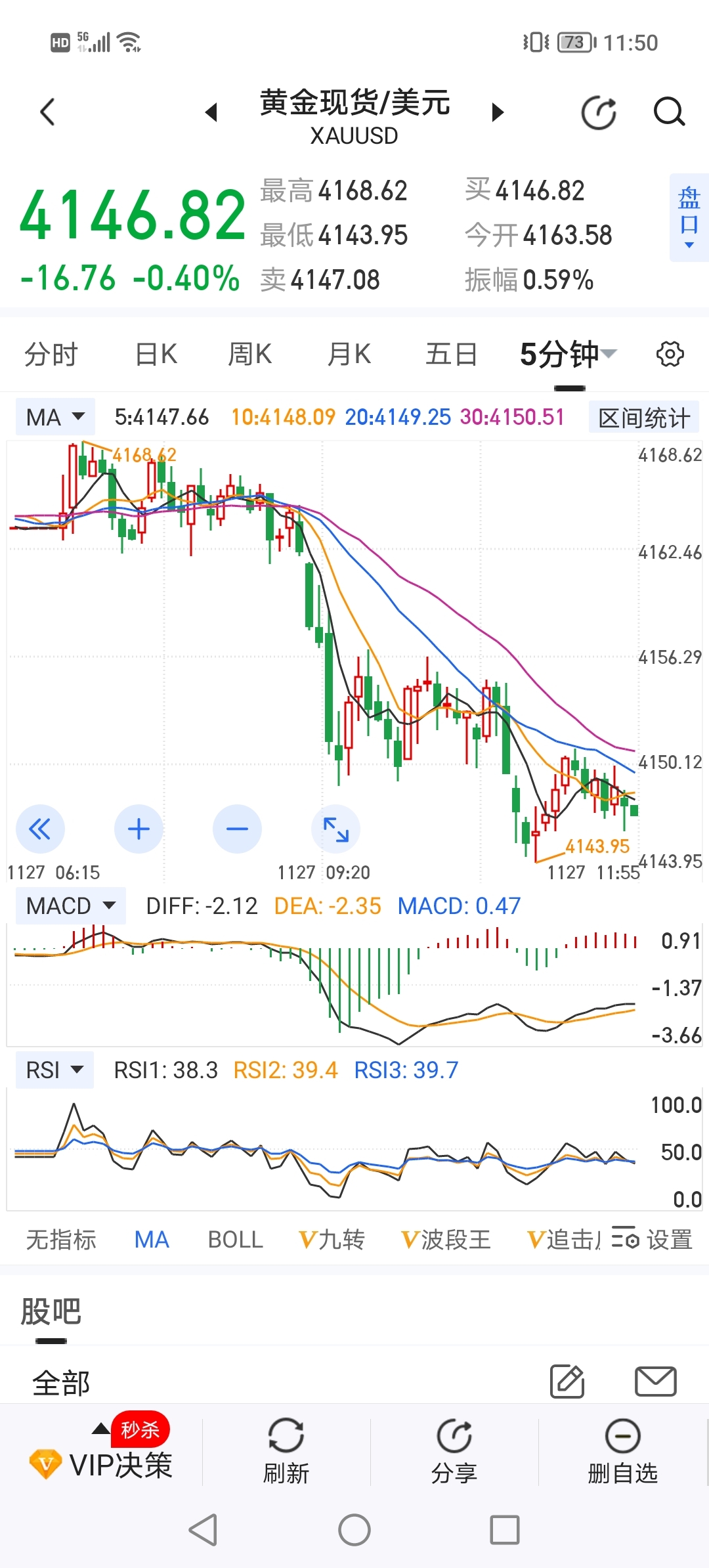 27日午间,黄金大幅下杀中