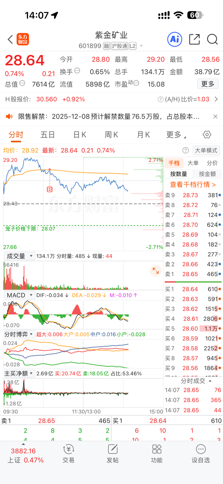 $紫金矿业(SH601899)$ 怪我,一买就跌,一卖就飞