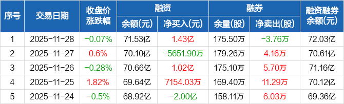 紫金矿业:融资净买入1.43亿元,融资余额71.53亿元(11-28)