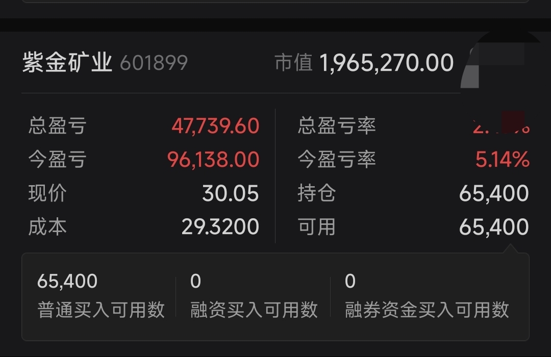 $紫金矿业(SH601899)$ 这股买来就是长期拿的,养老用。做t?不存在,每天赚点小钱