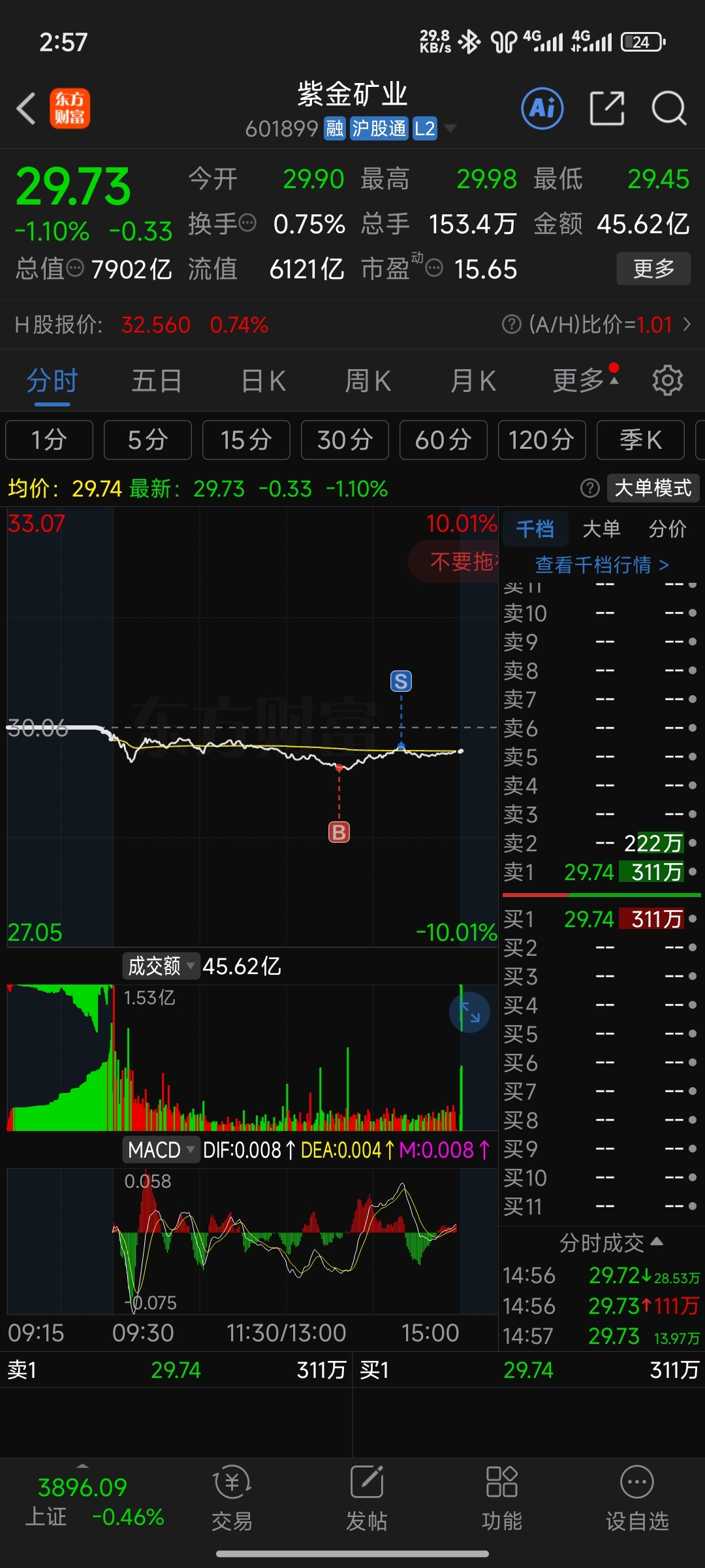$紫金矿业(SH601899)$ 每天降低一点成本