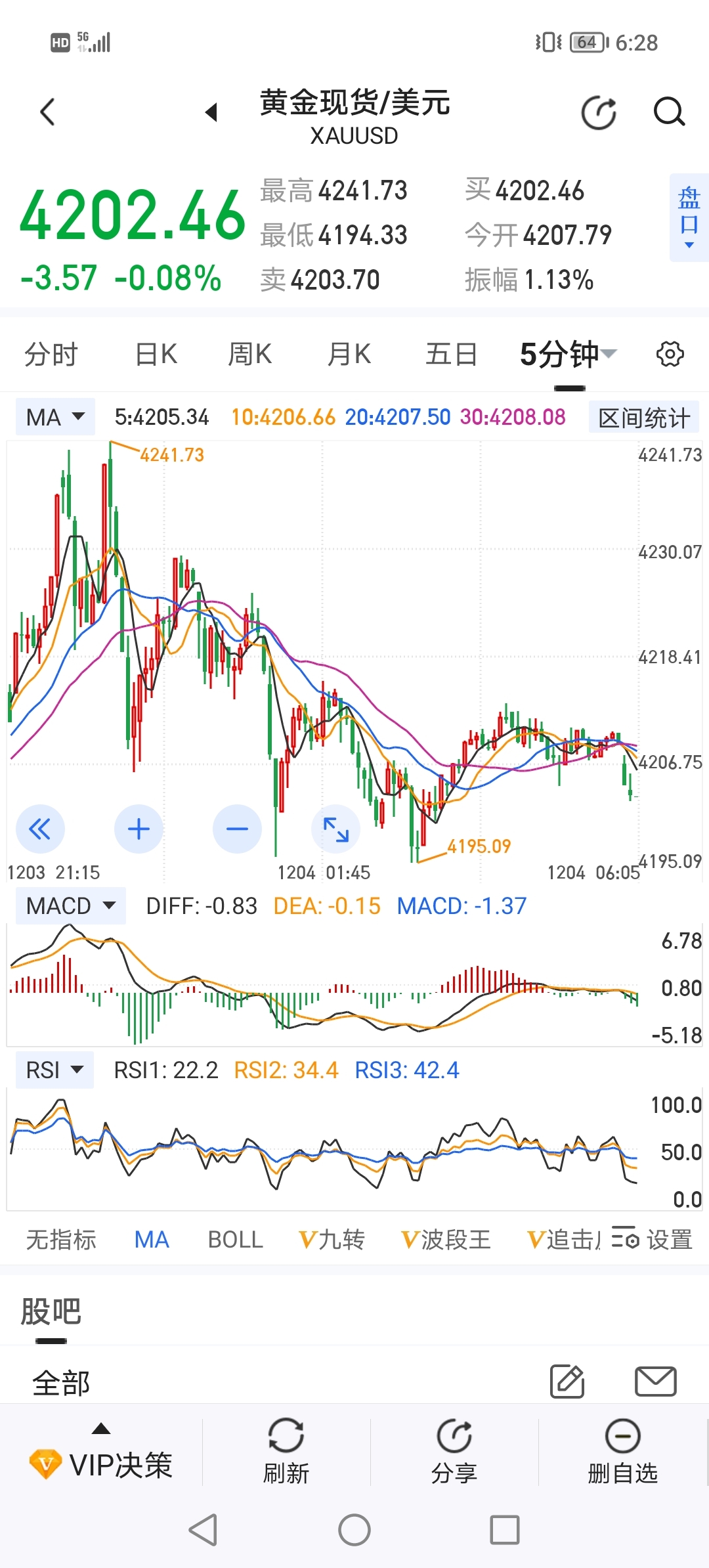 $紫金矿业(SH601899)$ 昨晚现货黄金收盘下跌,较日高大跌超39美元