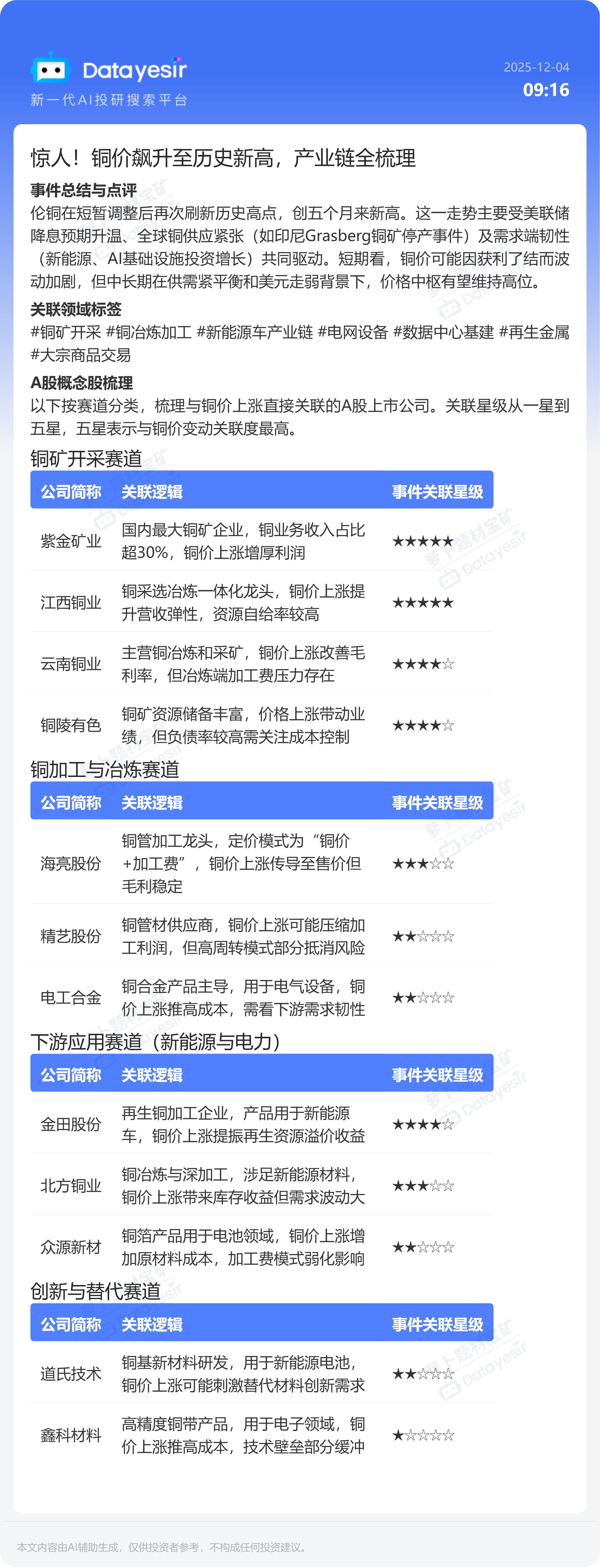 惊人!铜价飙升至历史新高,产业链全梳理