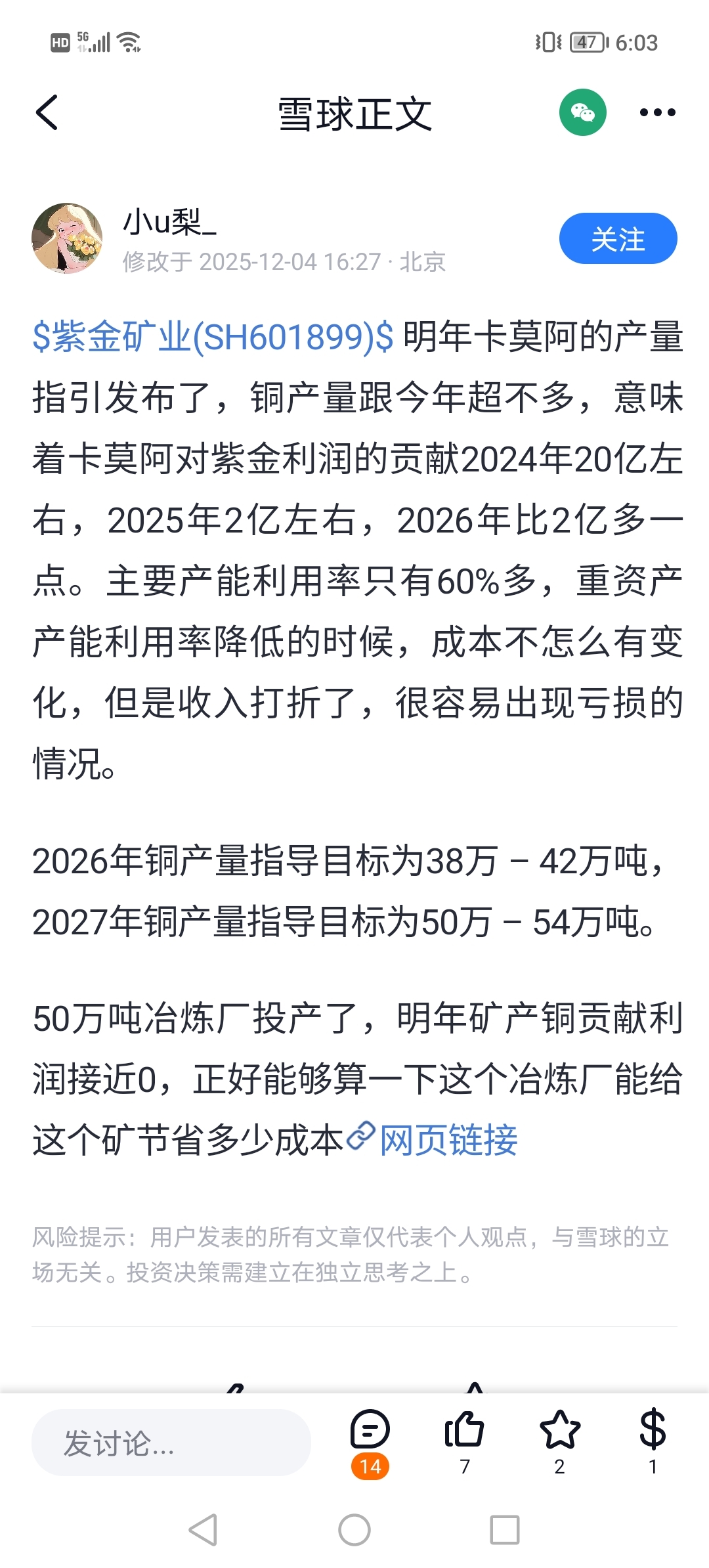 $紫金矿业(SH601899)$ 卡莫阿矿震影响远没有结束,给紫金造成的损失难以估量。之前是紫金的印钞机,如今要拖后腿几年了