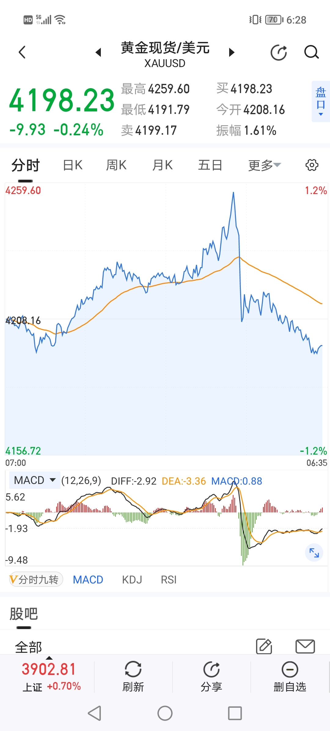 $紫金矿业(SH601899)$ 昨夜惊魂!黄金暴跌超60美元