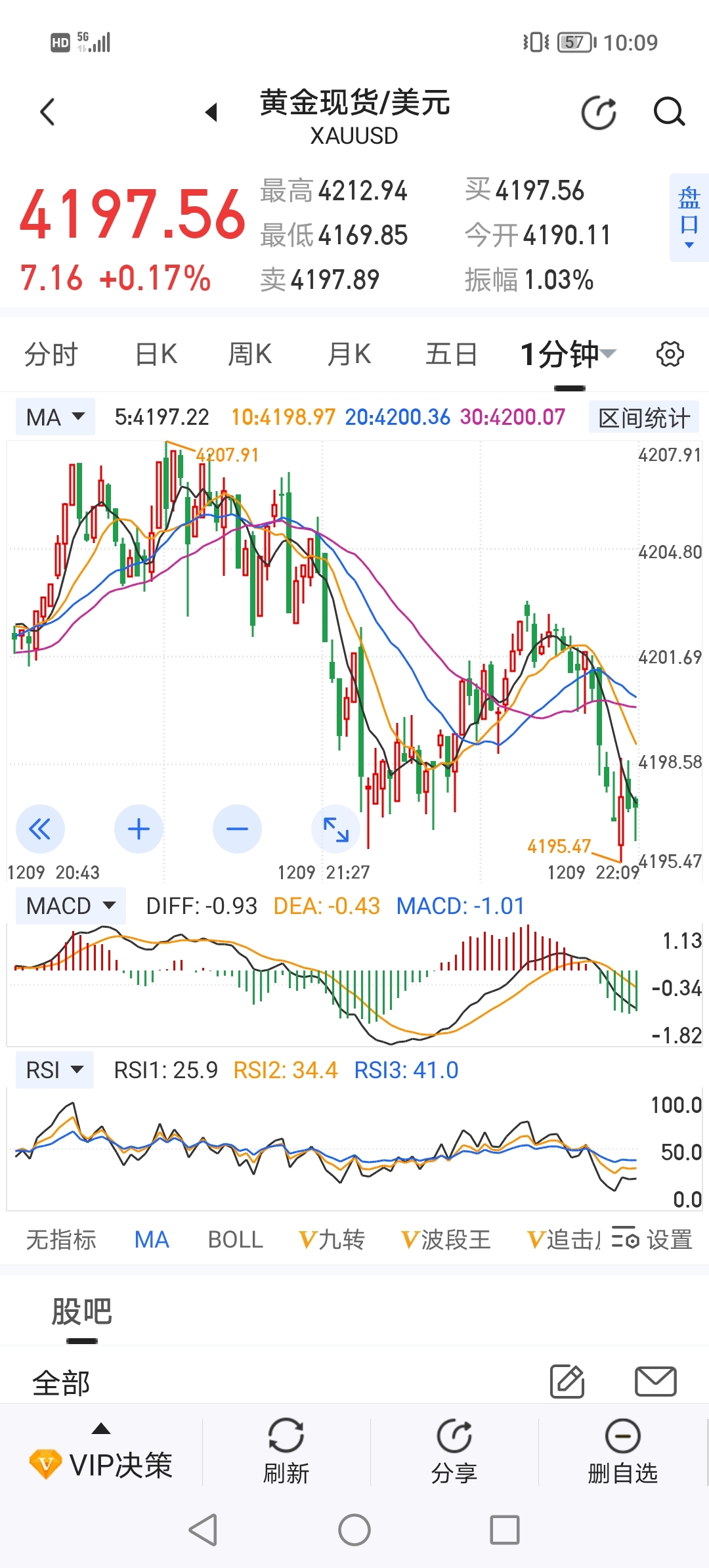 $紫金矿业(SH601899)$ 9日夜盘,黄金跌幅稍小但还在不断向下