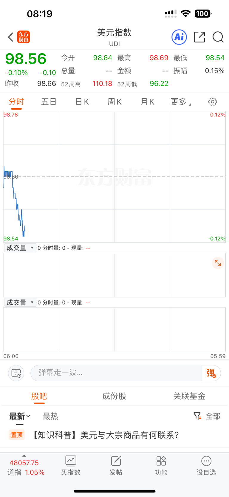 11日早间,美元指数跳空低开大幅跳水@股友123886