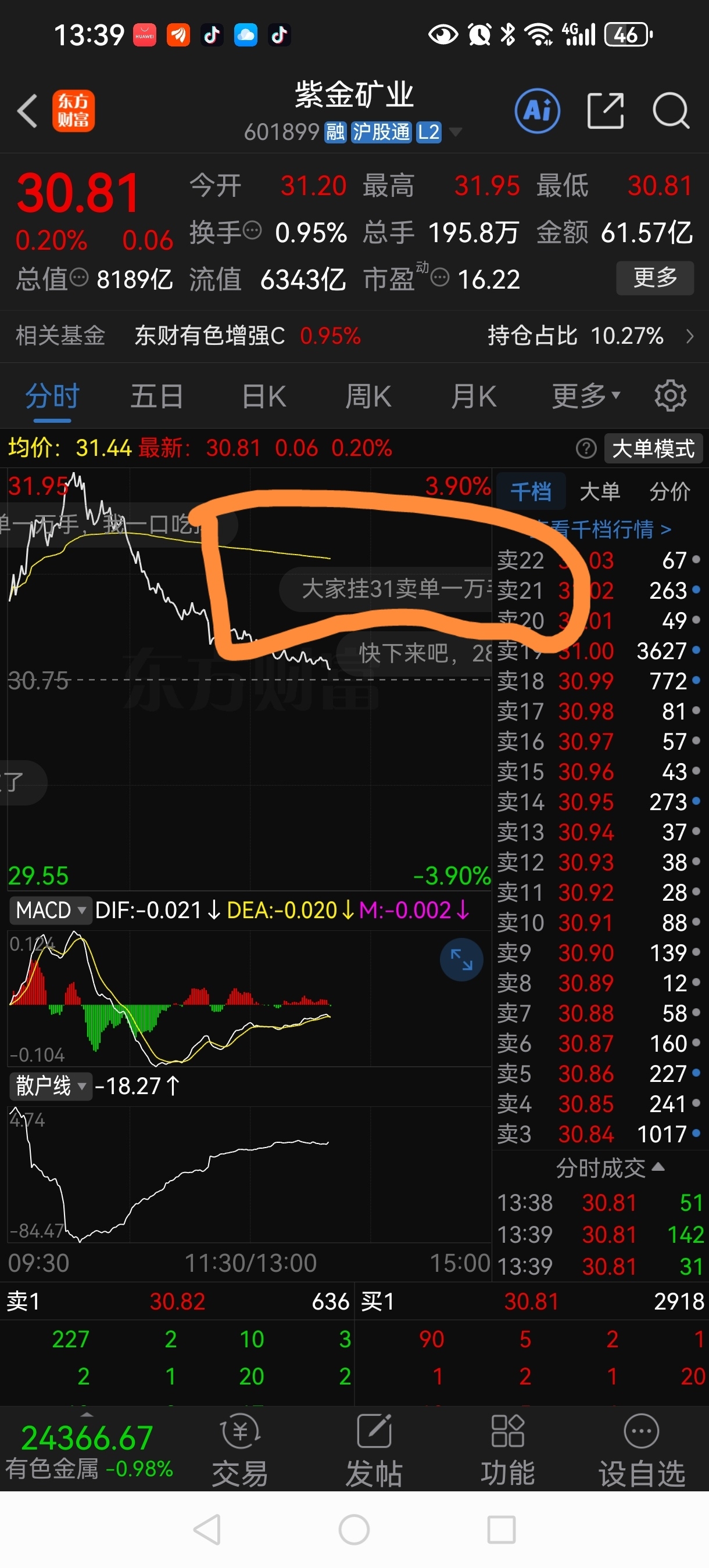 $紫金矿业(SH601899)$ 昨天下午就有这神秘大哥发弹幕,我和几个人还说他吹牛,后来真的出现万手单吃掉。