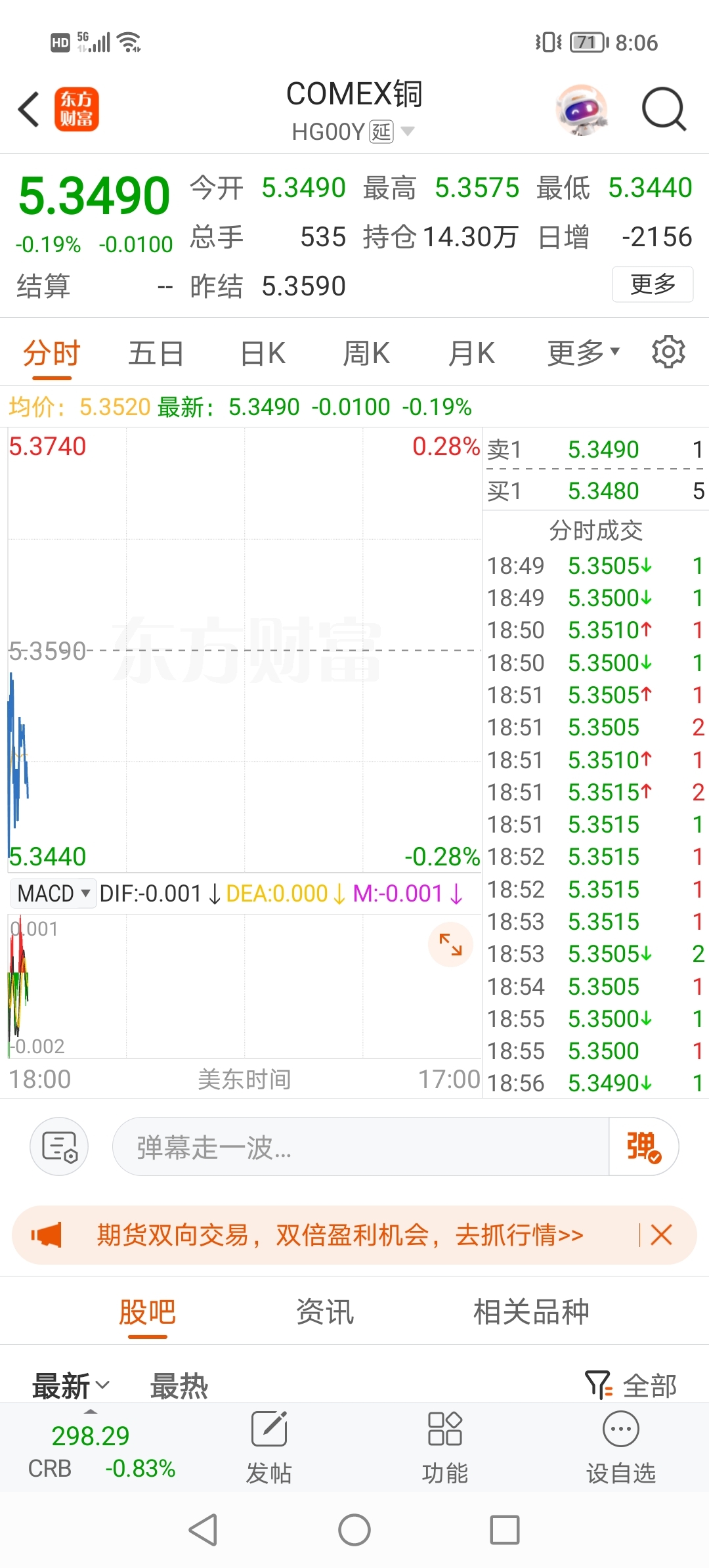 $紫金矿业(SH601899)$ 15日早盘,美铜继续低开低走
