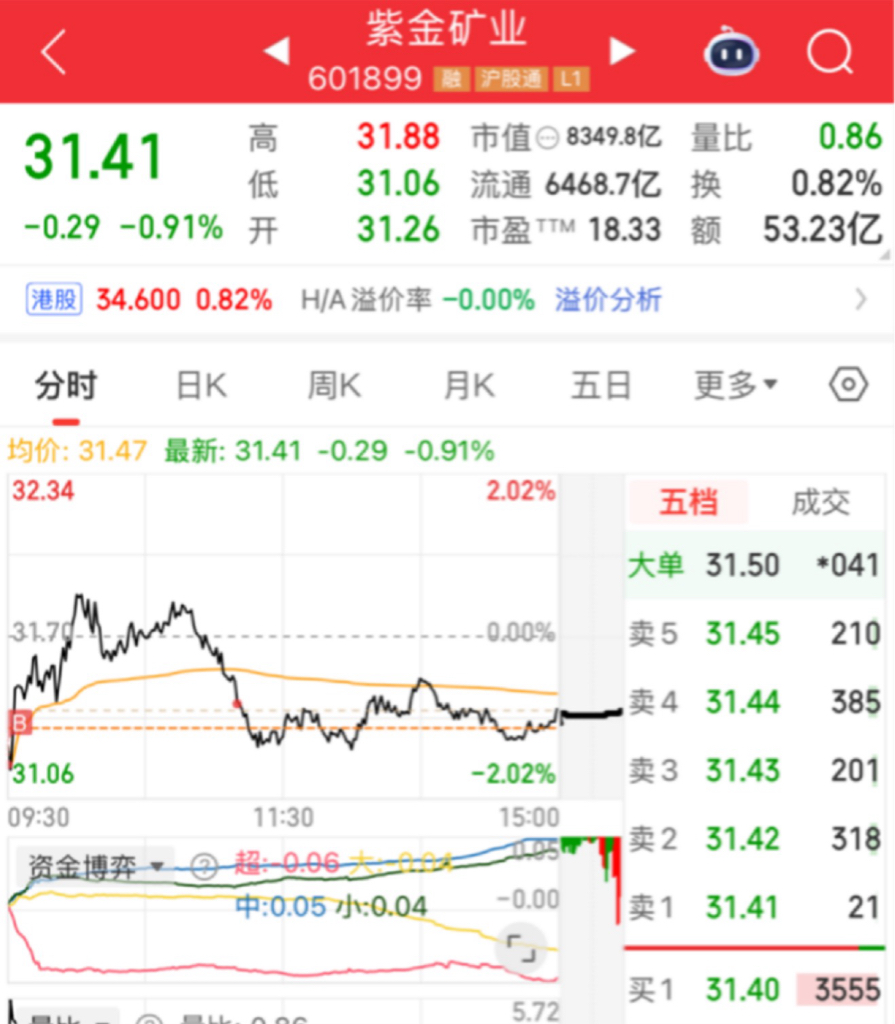 $紫金矿业(SH601899)$ 上午赚200多,收盘赚60,盘中富贵