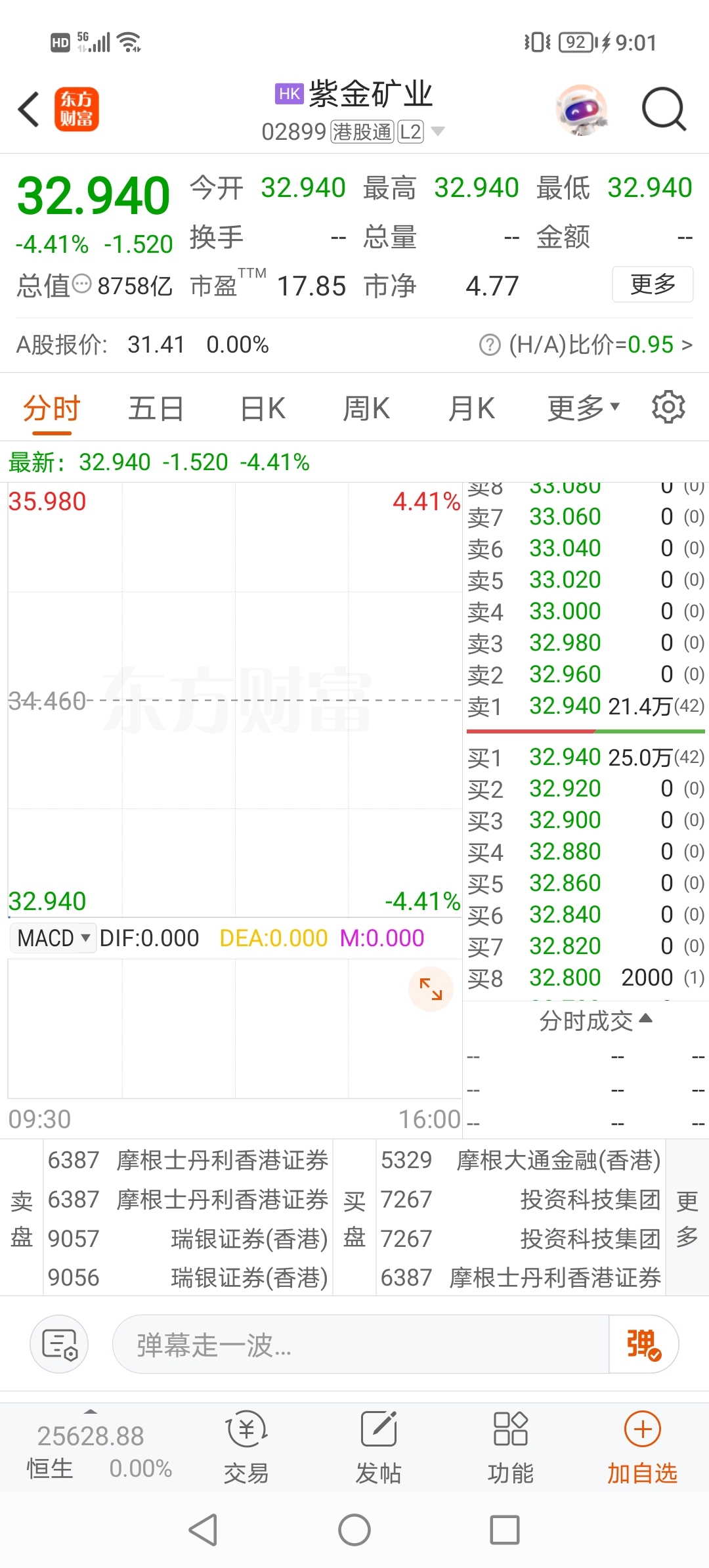 $紫金矿业(SH601899)$ 恐怖至极!!!紫金黄金暂跌10%