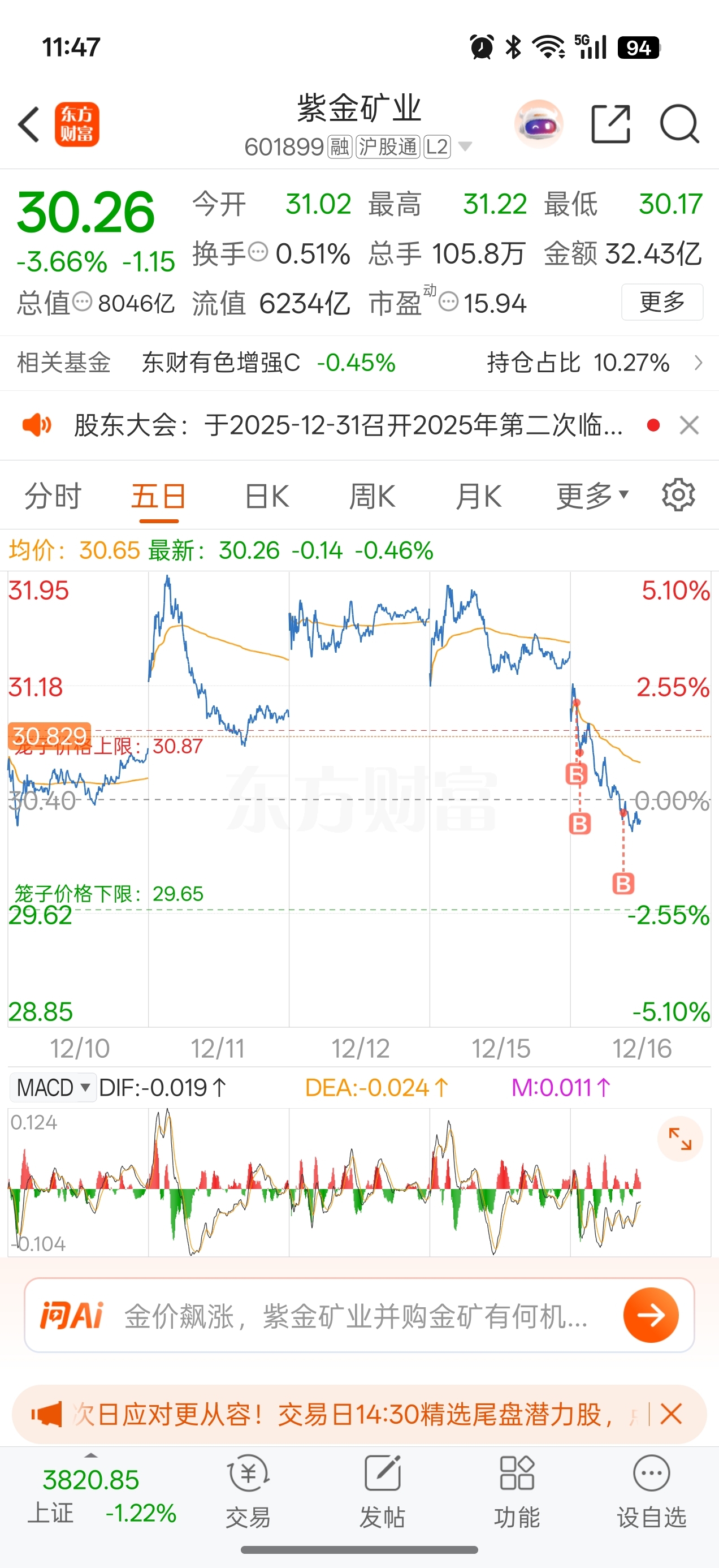 $紫金矿业(SH601899)$ 分三次进攻#投资随笔# #周末杂谈# #收盘点评# #周度策略# #实盘记录#