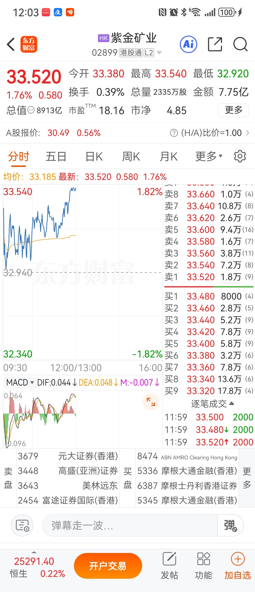$紫金矿业(SH601899)$ H股憋不住了,大A盘后拉起!!!