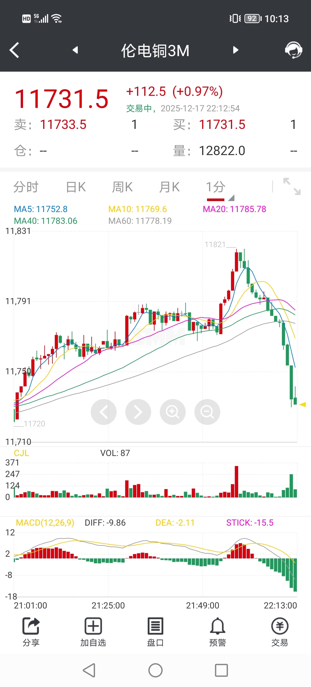 $紫金矿业(SH601899)$ 17日夜盘,就在刚刚伦铜跳水大幅下跌了