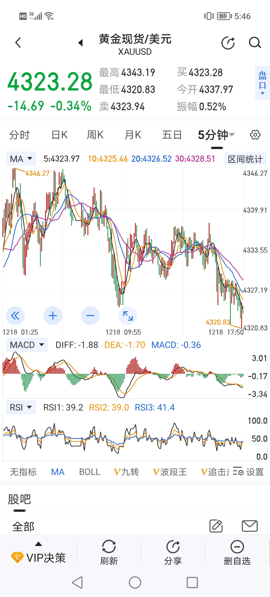 $紫金矿业(SH601899)$ 18日盘后,黄金持续下行已跌超25美元