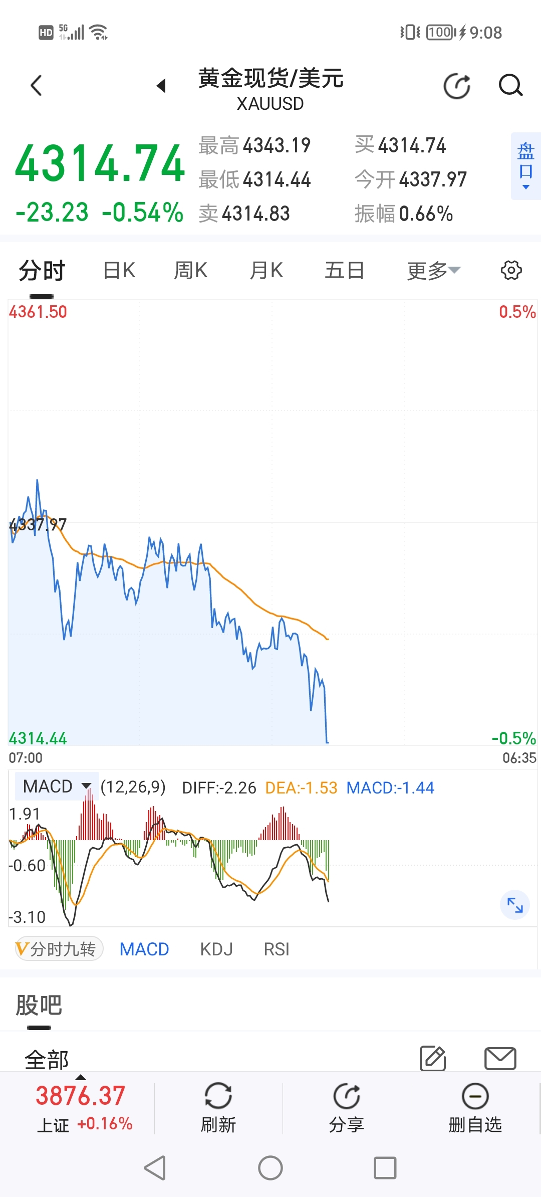 $紫金矿业(SH601899)$ 18日夜盘,黄金持续下行,目前已经大跌超30美元